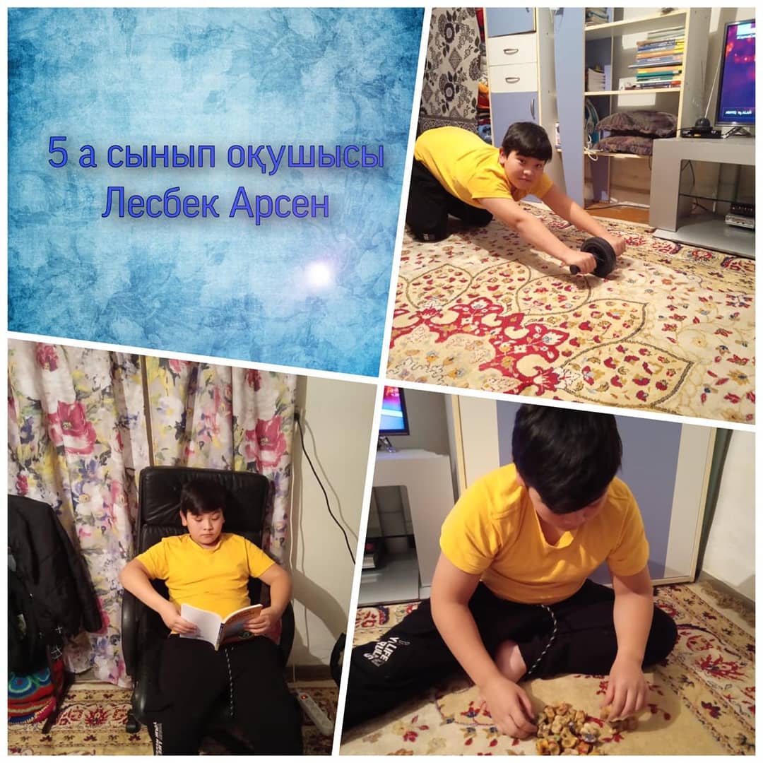 Келді міне күз, Айнала сары түс. Керемет, тамаша, Қандай әсем күз. 5а сынып оқушысы Лесбек Арсен демалыс күндерінде спортпен шұғылданып, үй тұрмысына көмектесіп, фильм көріп, қызық кітап оқитыны туралы мәлімдеді.
