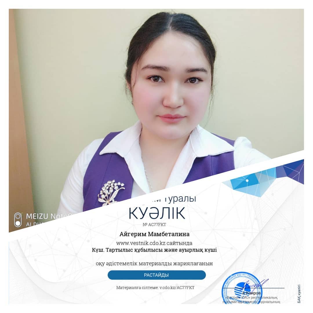 05 желтоқсан 2020 0 1 2 3 4 5 Айгерим Тулеуовна Мамбеталина, учитель физики опубликовала учебно- методический материал на тему "Күш. Тартылыс құбылысы және ауырлық күші"
