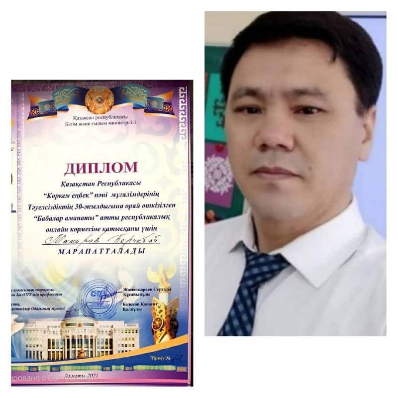 КГУ «Общеобразовательная школа №3»УO г.Алматы » Ақпарат » ДИПЛОМ Қазақстан Республикасы "Көркем еңбек" пәні мұғалімдерінің Тәуелсіздіктің 30 жылдығына орай өткізілген "Бабалар аманаты" атты республикалық онлайн көрмесіне қатысқаны үшін МАМИРОВ БЕРІКБАЙ марапатталады. ҚҰТТЫҚТАЙМЫЗ!