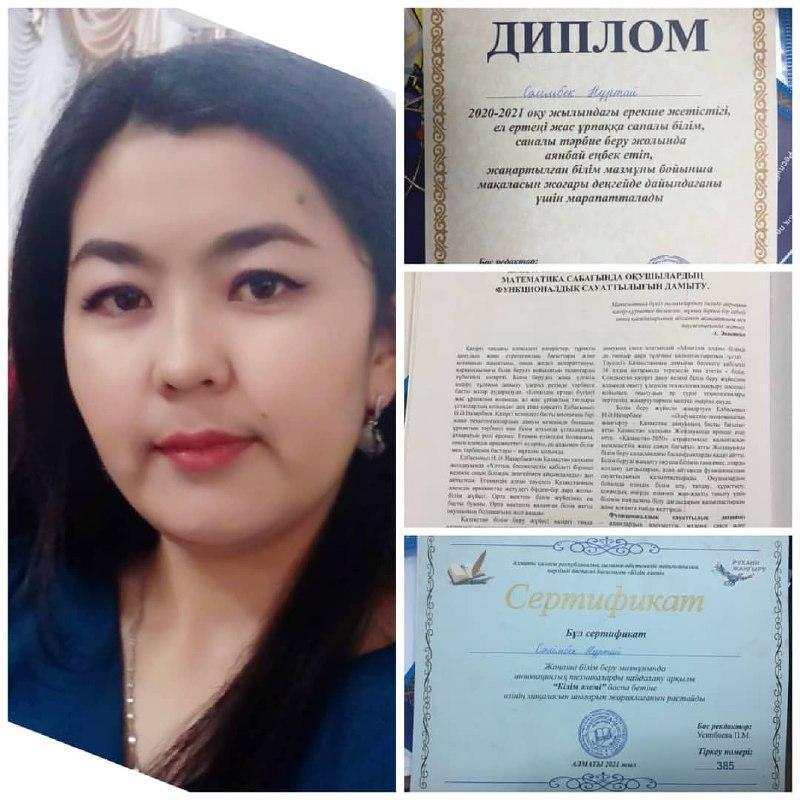 Бүгінгі күні егеменді елімізде білім берудің жаңа жүйесі жасалып, әлемдік білім беру кеңістігіне бағыт алғандықтан,білім берудің мазмұны жанарды, жаңа көзқарас, жаңаша қарым-қатынас пайда болуы аясында Нұртай Сәлімбек "Математика сабағында оқушылардың функционалдық сауаттылығын дамыту" тақырыбындағы мақала республикалық педагогикалық ғылыми-әдістемелік "Білім әлемі" журналының №04 (101) 2021ж., сәуір айында жарияланды.