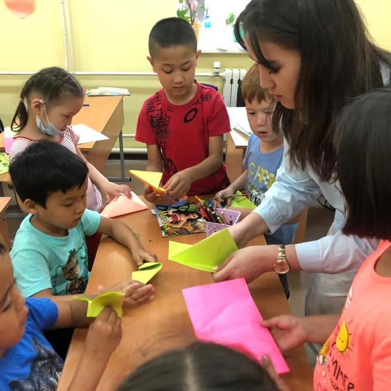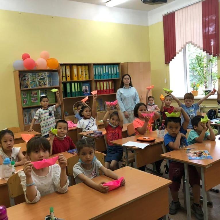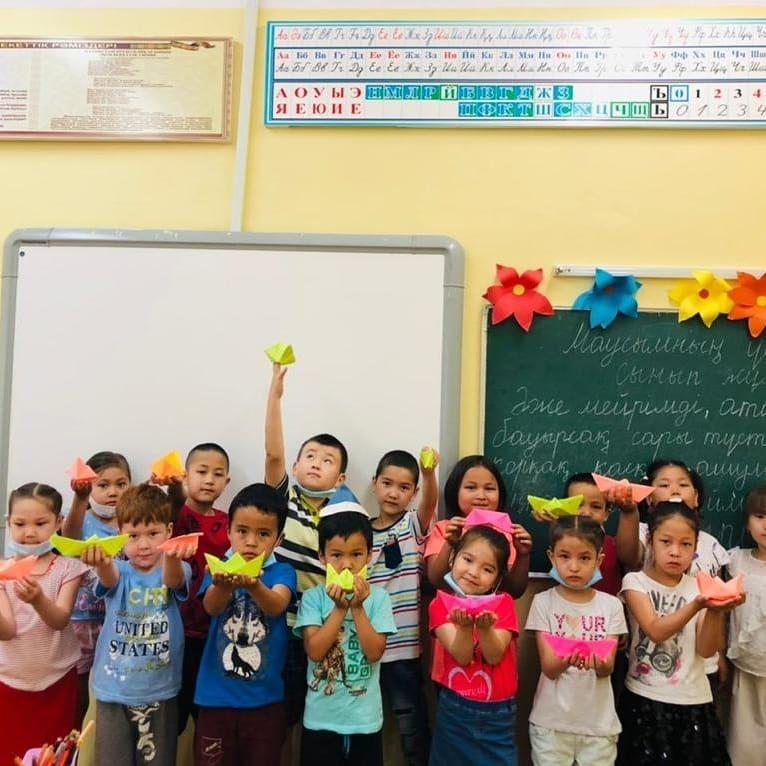 03 маусым 2021 0 1 2 3 4 5 Мектеп жанындағы "Күншуақ" лагеріне 1сынып оқушылары көркем еңбек пәнінен оригами - бүктелген қағаздан әр түрлі пішіндер, соның ішінде қайықты жасады.
