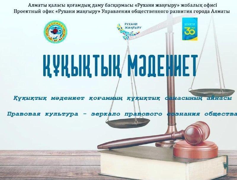 Уважаемые жители Жетысуского района! Сообщаем вам, что в рамках реализации программы «Рухани Жаңғыру» в городе стартовал месячник правовой грамотности «Құқықтық мәдениет».