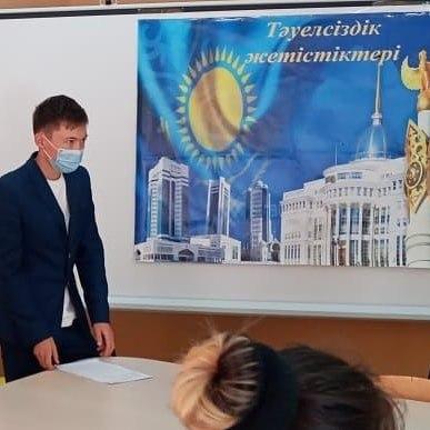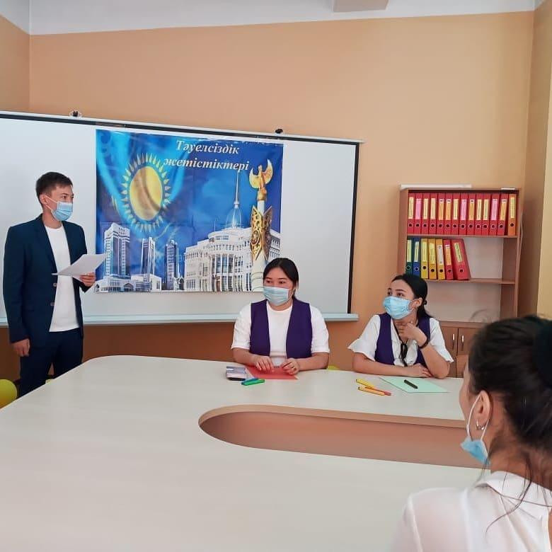 06 қыркүйек 2021 0 1 2 3 4 5 "Тәуелсіздік жылдарындағы жетістіктер" Биыл егемен ел болғанымызға 30 жыл толып отыр. Тәуелсіздік – біздің ең қастерлі құндылығымыз.Мектебіміздің жас педагогтары арасында "Тәуелсіздік жылдарындағы жетістіктер" тақырыбында дөңгелек үстел өтті.Спикер Даният Алмасұлы.
