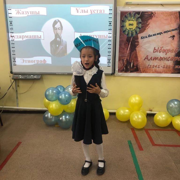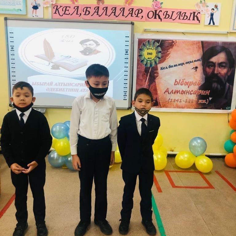 Ы.Алтынсариннің 180 жылдық мерейтойына арналған "Кел, балалар, оқылық!" атты танымдық-шығармашылық сабақ 4аәб сынып арасында Н.М.Касымова ұйымдастырды. Білім алушылардың бірінші тобы ағартушы, жазушы, этногроф қызметін атқарған, Ұлы ұстаздың өмірі және шығармашылығымен танысты әрі берілген сұрақтарға жауап беріп, пікір алмасты. Екінші топ өлеңдерінен, мысалдарын оқып, үзінді келтірді.