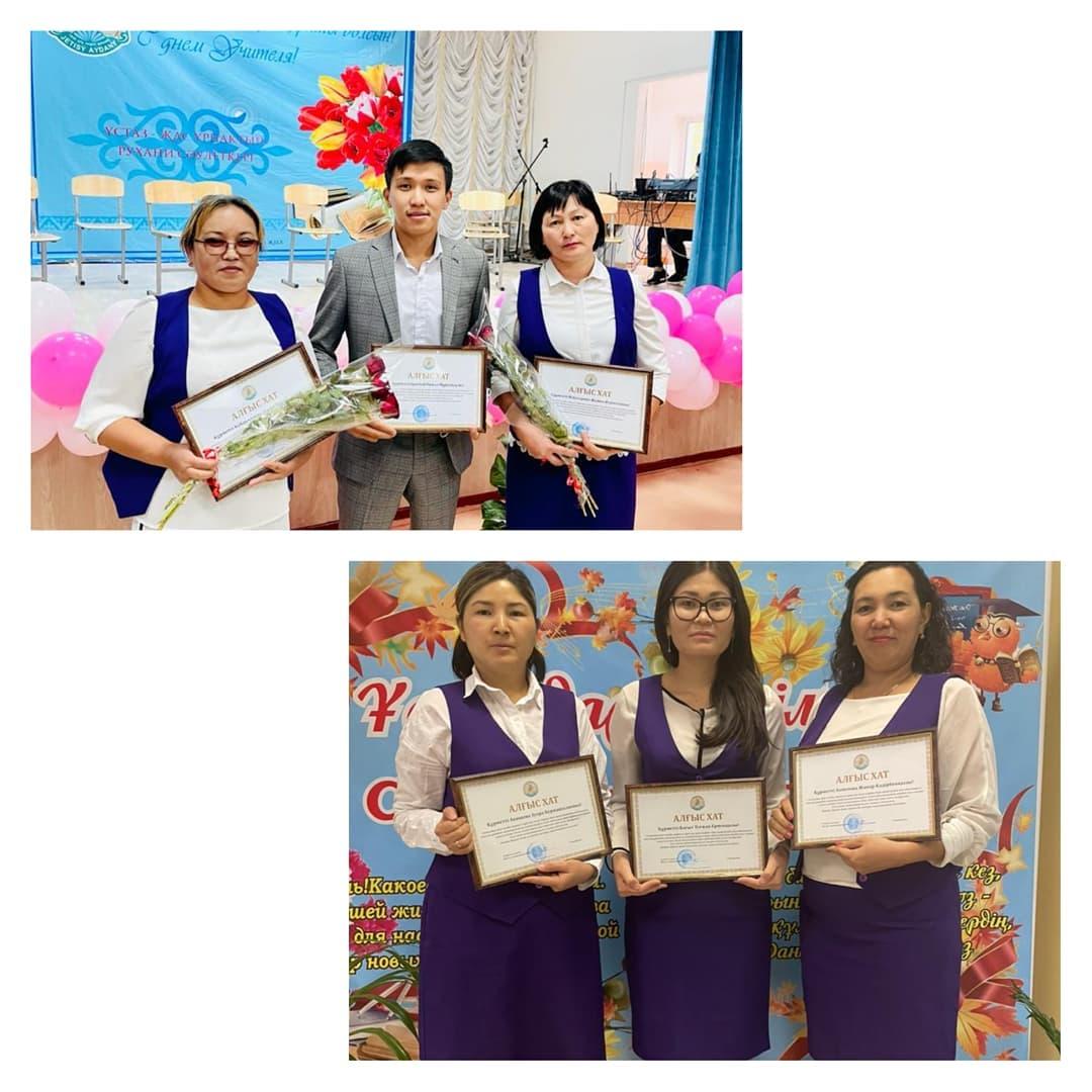 "Ұстаздар күні" кәсіби мерекеге орай оқу және тәрбие беру процестерін ұйымдастыруға, өскелең ұрпақта зияткерлікті қалыптастыруға және адамгершілікке тәрбиелеуге қосқаны елеулі үлесіңіз, білім саласындағы адал еңбегіңіз үшін алғыс білдіретіні туралы Жетісу ауданының әкімі Г.Кокобаева марапаттады.