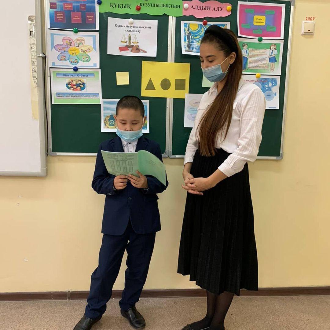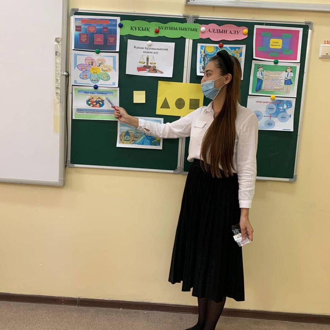 Оқушыларға құқық , жауапкершілік, қылмыс ұғымын және түрлерін, қылмыс жасаған жағдайда азаматтарға берілетін жазалар туралы, құқықтың барлық салаларын құрметтей отырып, заң алдында барлық азаматтардың теңдігі, ешкімнің ар – намысына тимеуге және балағаттауға, бөтеннің мүлкіне қол сұқпауға, сонымен бірге оқушыларға құқық бұзушылықтың алдын алуға, құқық бұзғаны үшін кінәлі азаматтардың заң бойынша жауапқа тартылатындығы туралы түсіндіру мақсатында Айнур Талғатқызы 5ә сынып оқушыларына "Құқықбұзушылықтың алдын алу" тренингін өткізді.