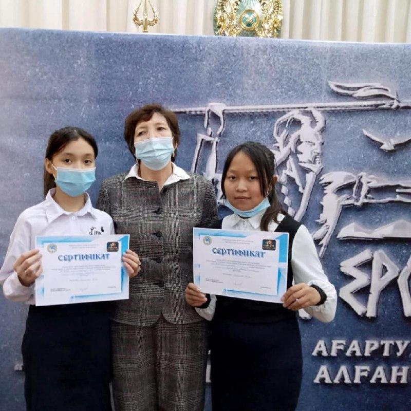 03 қараша 2021 0 1 2 3 4 5 "Тұлпар мініп - ту алған" "QazaqEpos" республикалық ағарту жобасының "Тұлпар мініп- ту алған" байқауының аудандық кезеңінен 8а сынып оқушылары Нұрлыбек Жанель мен Сейітхан Айдана сертификатпен марапатталды.Жетекшісі:Г.И.Конысова