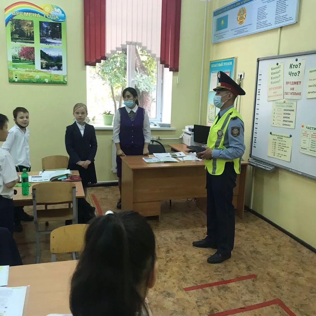 Ермекбаев Самат старший сержант полиции, линейное отделение полиции на станции Алматы-2 проводил беседу на тему "Правила поведения на железной дороге" с учащимися школы.
