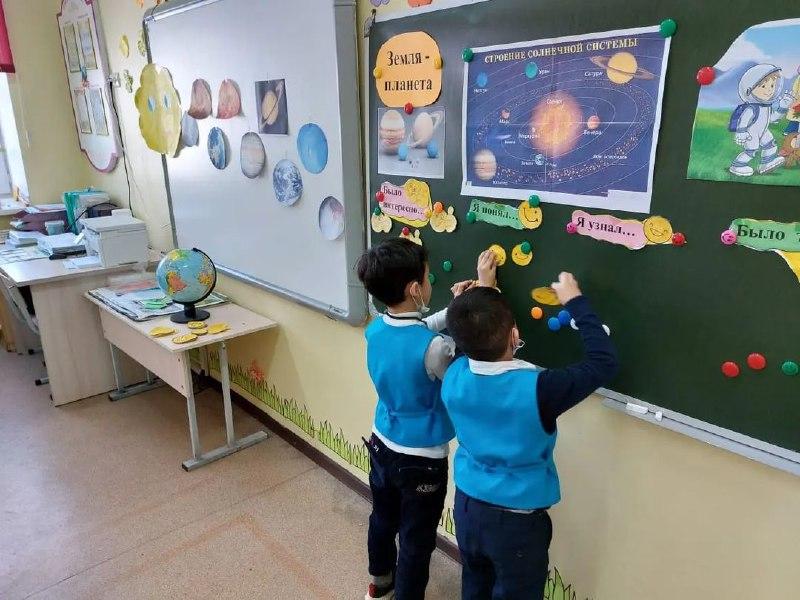 Урок естествознания. 1б класс. Тема: Земля-планета. Цель; характеризовать астрономию как науку о космосе; сформировать представление о Солнечной системе; Определять порядок расположения планет Солнечной сисиемы; Определить форму Земли на основе ее модели. Классный руководитель З.К.Джагалтаева
