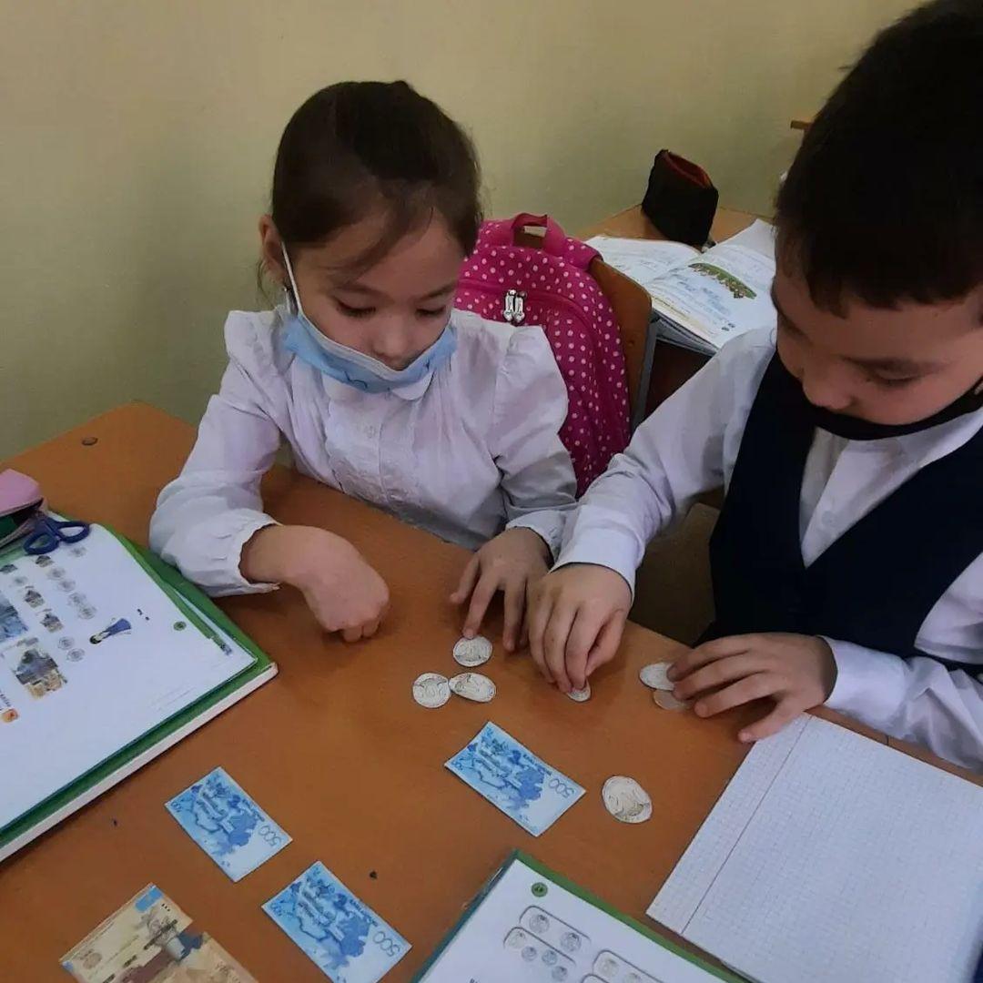 Бағалау критерийлері 50тг, 100тг тиындарды, 200тг, 500тг қағаз ақшаларды ажырата білу және олармен әр түрлі операциялар жасауды үйренеді.