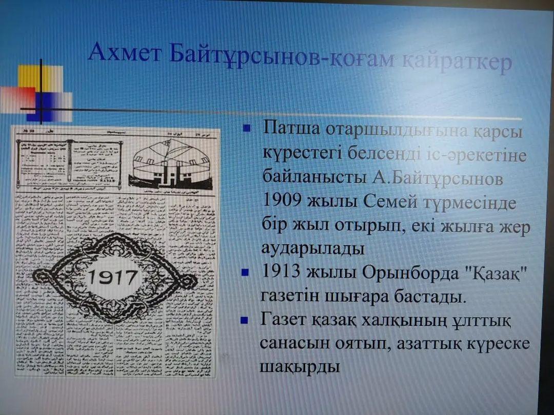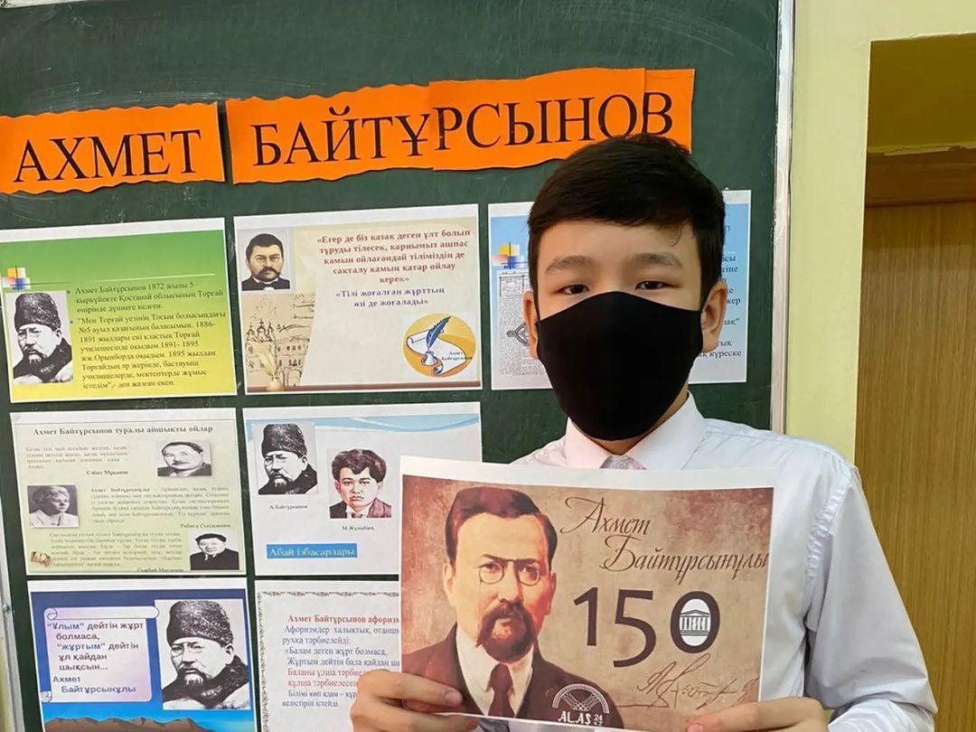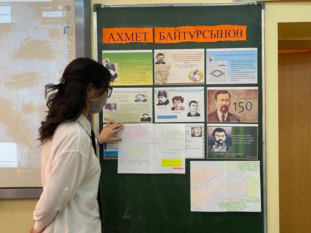 Қазақ халқының әлеуметтік, саяси, мәдени , тарихи өмірінде орны айрықша зор тұлға-Ахмет Байтұрсынұлының халықтық тәлім-тәрбиелік ойларының негізінде оқушылар бойына адамгершілік, ұлтжандылық, отансүйгіштік қасиеттерді дарыту; ақын, қоғам қайраткері, педагог-ұстаздың құнды мұраларын дәріптеп, жас ұрпақты ұлттық рухта тәрбиелеу мақсатында "Ахмет Байтұрсынов" тақырыбында Гулмира Советбековна тәрбие сабағын өтті.
