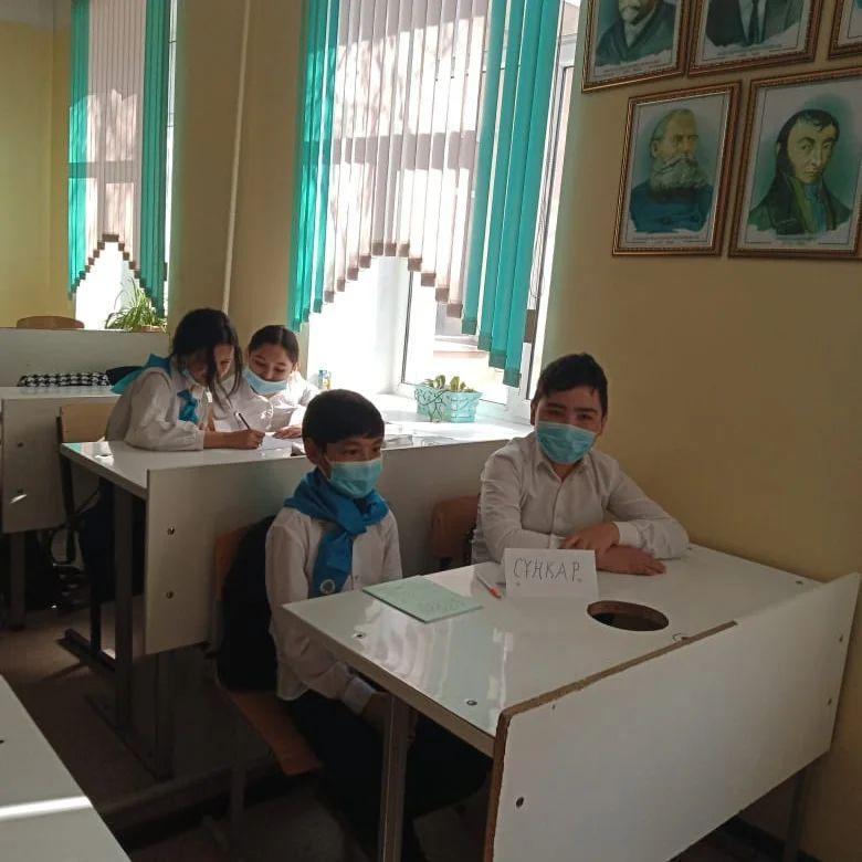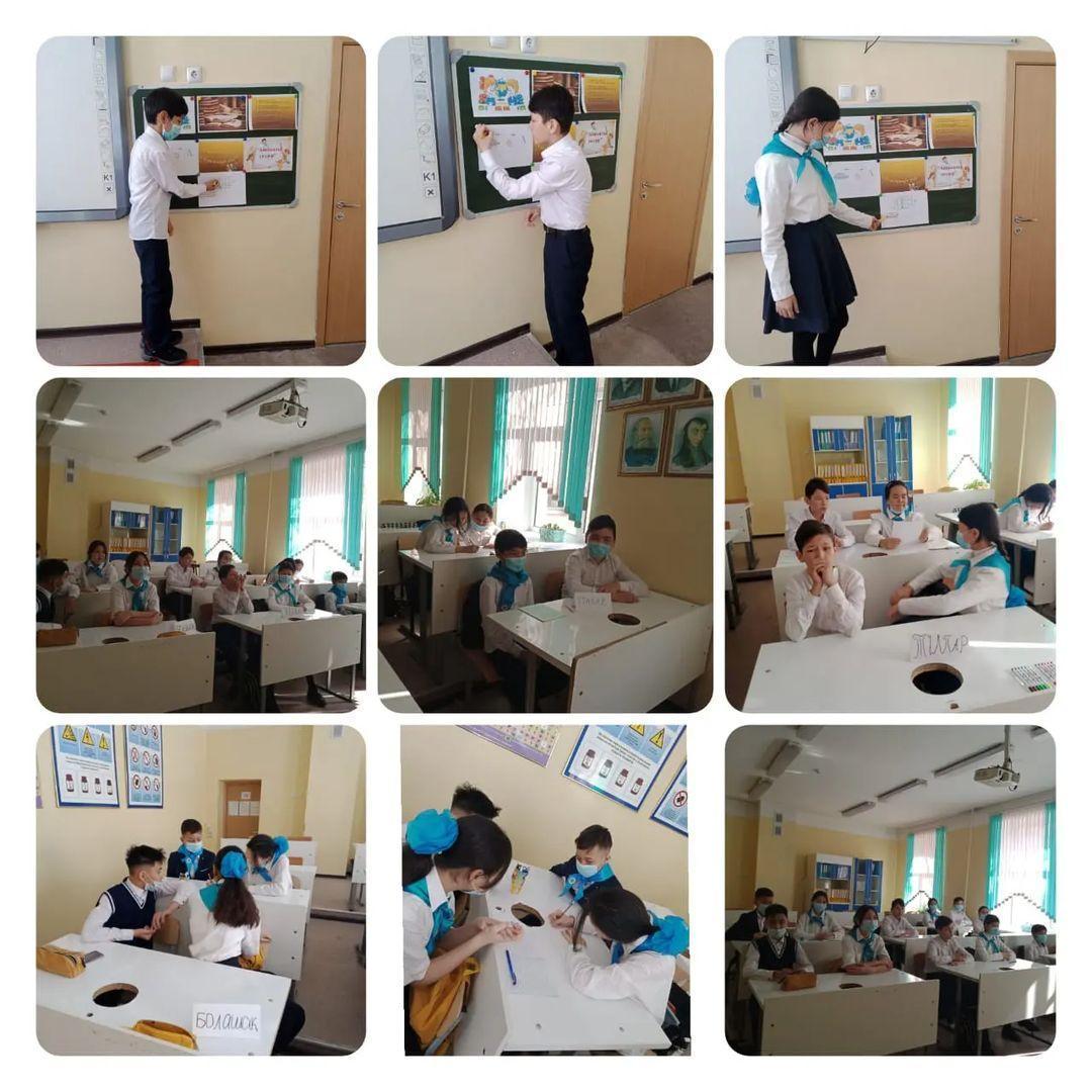 топпен жұмыс істеу және өзгенің пікірін құрметтеуге, ұйымшылдыққа баулу мақсатында "Ұшқыр ой мен шешен тіл" тақырыбында Нұржанат Дарханқызы 7ә сынып оқушыларына зияткерлік сайыс сабағын өтті.