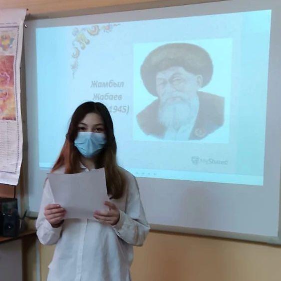 07 қазан 2021 0 1 2 3 4 5 Жамбыл Жабаев 7 б класс.Тема: Жамбыл ЖабаевЦель: популяризации творческого наследия Ж. Жабаева. Формирование патриотический чувств, воспитание любви и уважения к творчеству поэта.Классный руководитель К.Ш.Урбаева.