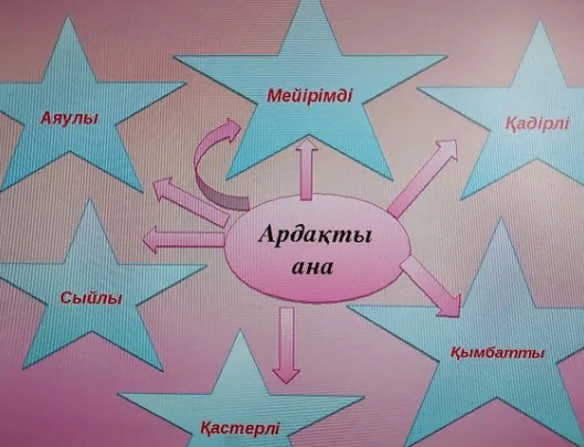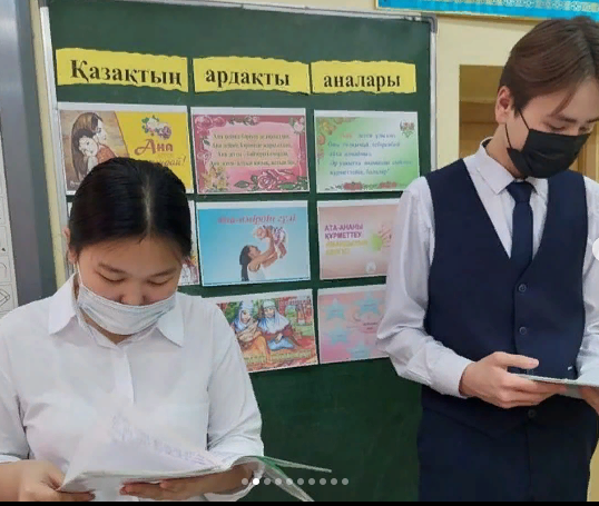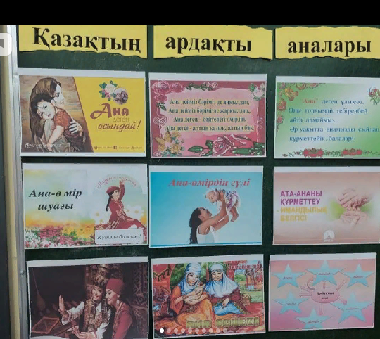 Қазақ қоғамында әйелдің орны ерекше. «Әйел бір қолымен бесікті тербетсе, бір қолымен әлемді тербетеді» деген сөз бар. Ұлттың болашағы да қазақтың әйелінің қолында. Сондықтан қазақ әйелі отбасы қоғамының ұйытқысы, тәрбиенің берік қорғаны мақсатында Гулмира Советбековна 9а сынып оқушыларына "Қазақтың ардақты аналары" тақырыбында тәрбие сабағын өтті.