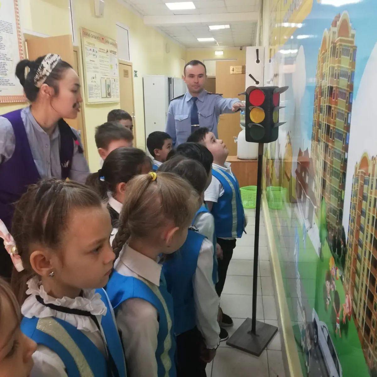 "Жолда жүру ережелері " тақырыбында полиция аға лейтенанты Нурсадыков Олжас 3 сыныптар арасында әңгіме жүргізді.