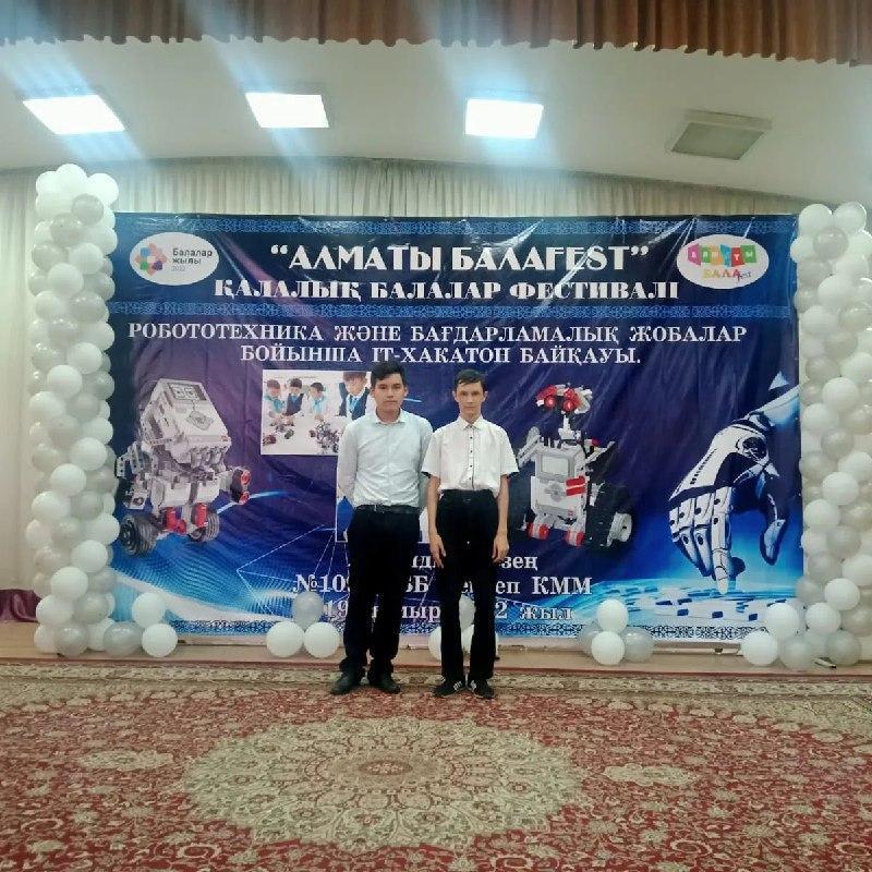 ДИПЛОМ "Алматы "БAЛАFEST" фестивалі аясында IT - ХАКАТОН "Бағдарламалық жоба" байқауының аудандық кезеңінде "Мобильді құрылғыны дамыту" номинациясы бойынша ЗЕНИН НИКИТА ІІ орын, " Ойын дамыту" номинациясы бойынша Молдахметов Темірлан дипломмен марапатталды. Жетекшісі Н.Дархан