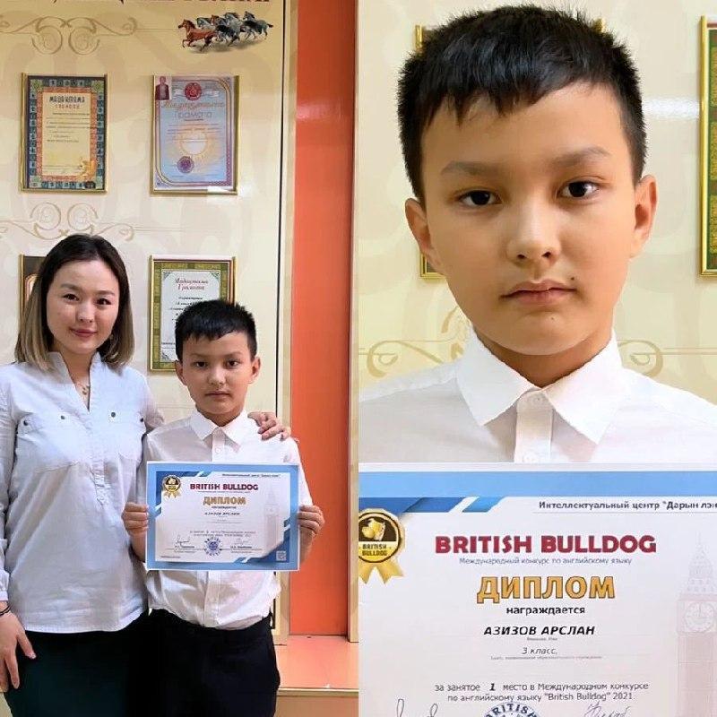 Интеллектуальный центр "Дарын Лэнд". BRITISH BULLDOG Международный конкурс по английском языку ДИПЛОМ награждается АЗИЗОВ АРСЛАН за занятое 1 место в Международном конкурсе по английскому языку "British Bulldog". Учитель Молдир Айдаровна.