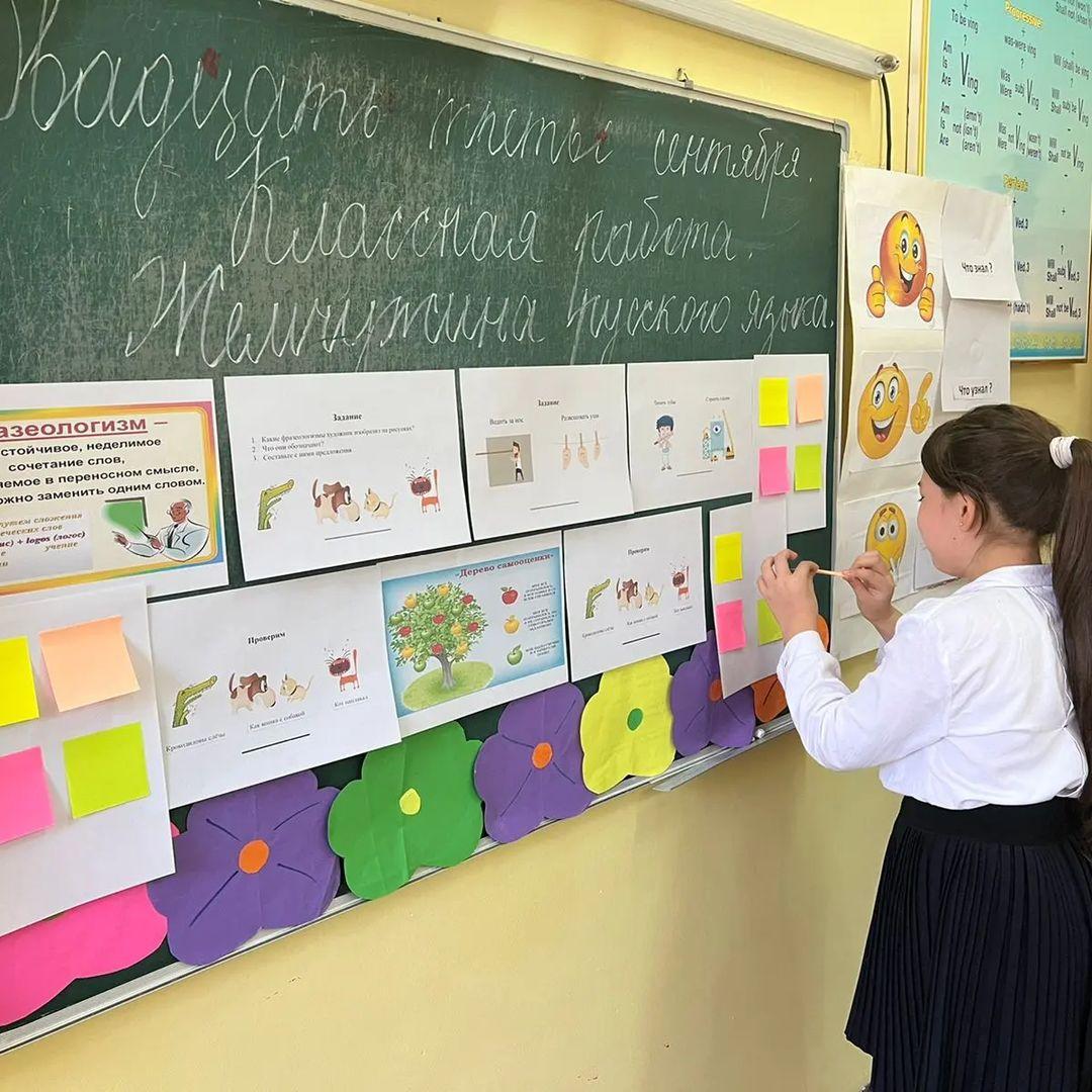 Айнур Талгатовна в 6 «Ә» классе провела урок русского языка и литературы на тему «Жемчужина русского языка».