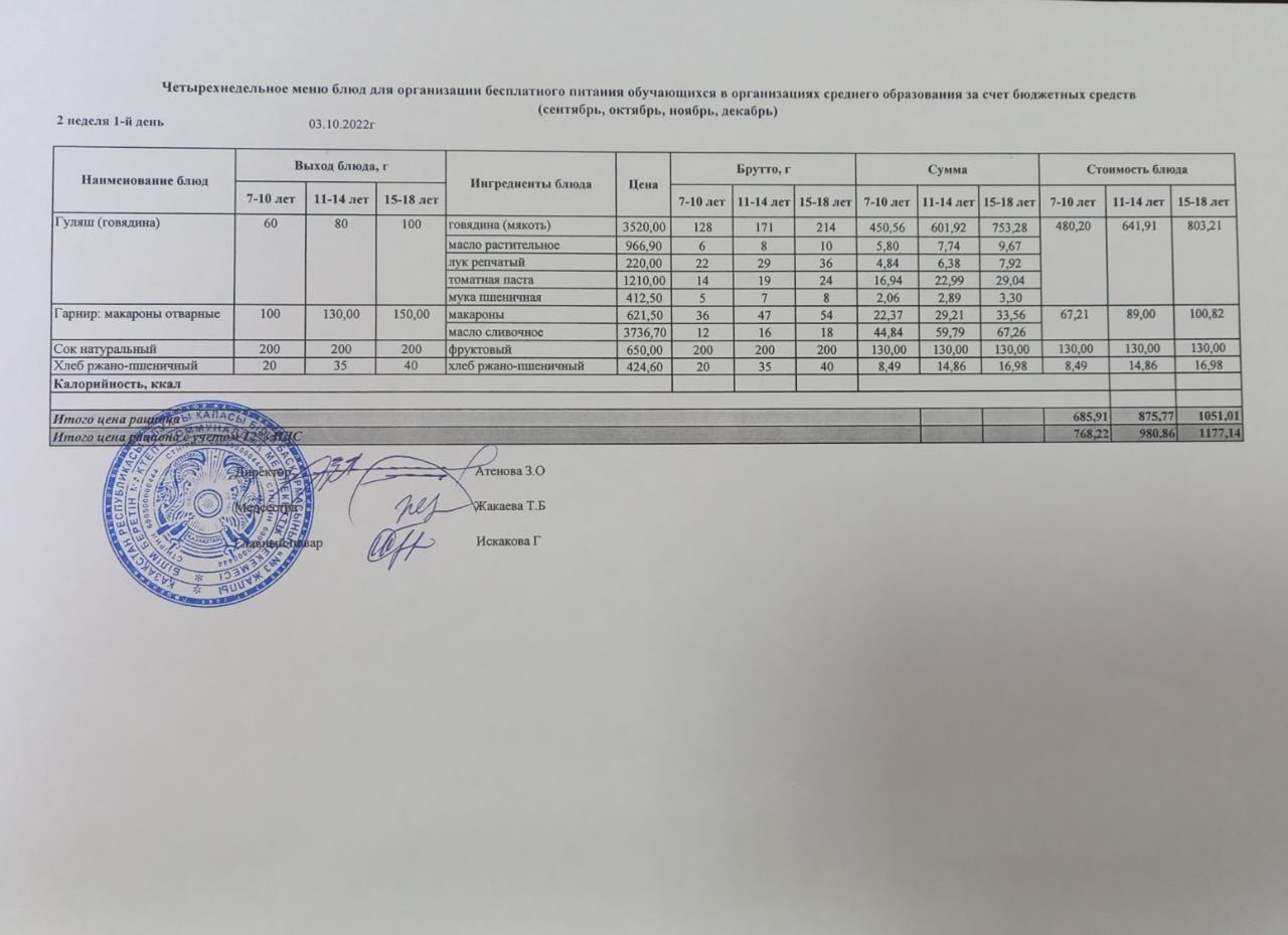 Бүгінгі ас мәзір 04.10.2022 жыл