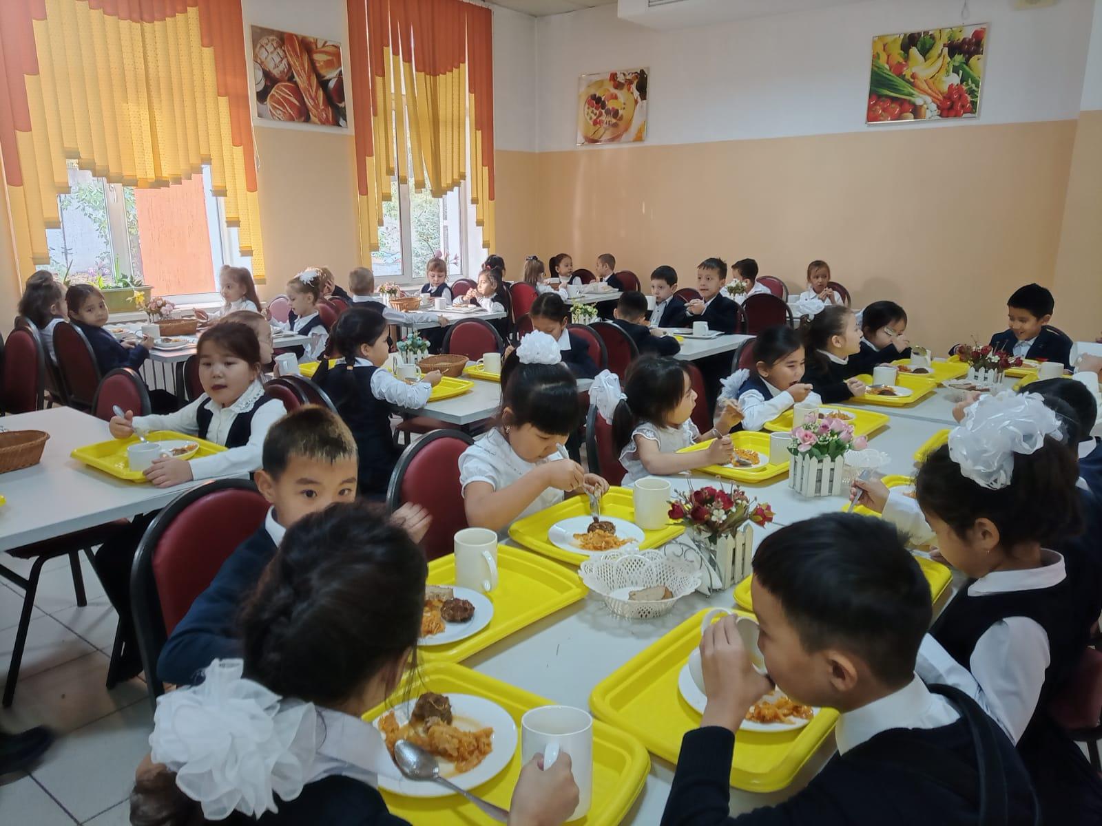 1а сынып оқушылары. Тамақтану сәті.