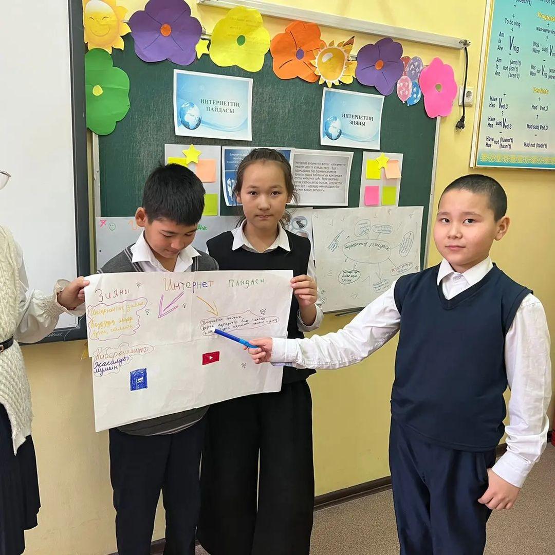 Айнұр Талғатқызы 6 “ә” сынып оқушыларына “Әлеуметтік желінің пайдасы мен зияны ” атты сынып сағатын өткізді. Сынып сағаттың мақсаты: Оқушылардың өз ойларын тиянақты жете айта біліп, өздерін сабырлы әрі тәртіпті ұстауды ескеріп, қарсыластарын тыңдай білуге тәрбиелеу. Білімгерлерге интернет туралы толық ой қалыптастыру,