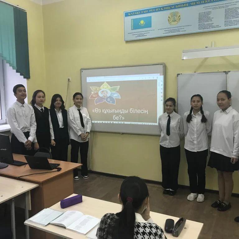 Оқушылардың адам құқығы, оның ішінде бала құқығы жөнінде түсінігін кеңейту ,әрбір адам өз құқығын біліп,өзгенің құқығын бұзбауға үйрету мақсатында "Бала құқығы- асыл қазына" тақырыбындағы сынып сағатын Еділ Оразбайұлы 8ә сыныбында өтті.
