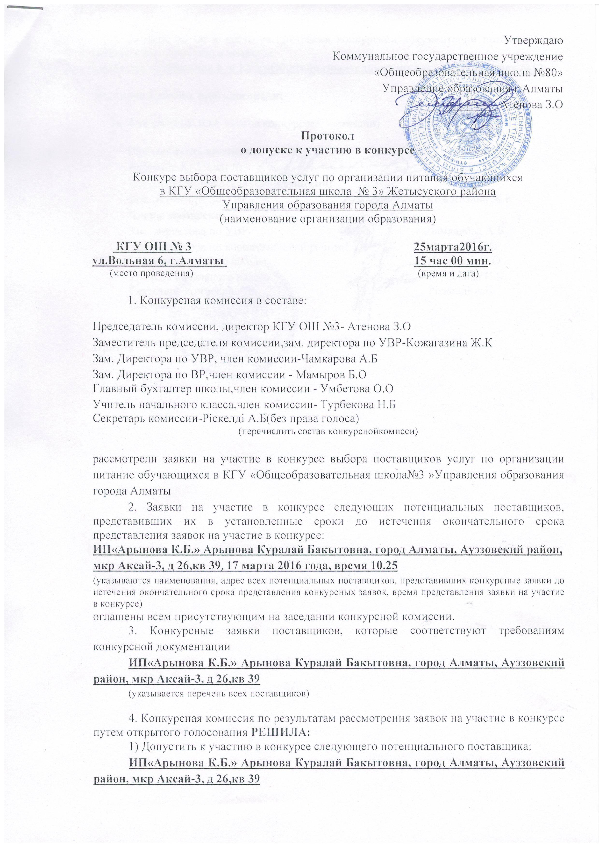 Протокол о допуске к участию в конкурсе