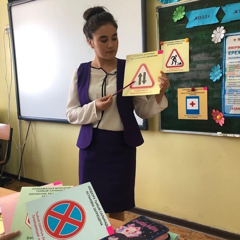 27 ақпан 2020 0 1 2 3 4 5 Н.М.Касымова 4ә сынып оқушыларына "Жолда жүру ережесі" тақырыбы бойынша оқушыларға жол белгілері, жолда жүру ережелерімен таныстырып, көшеде дұрыс жүр