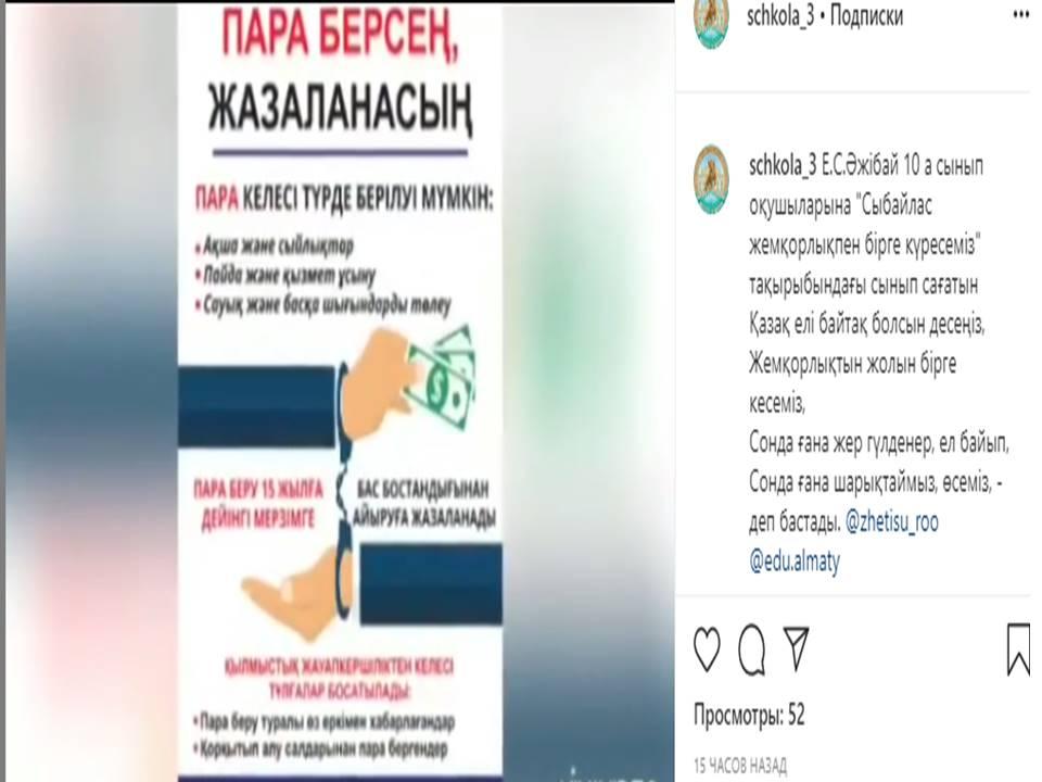 14 мамыр 2020 0 1 2 3 4 5 Е.С.Әжібай 10 а сынып оқушыларына "Сыбайлас жемқорлықпен бірге күресеміз" тақырыбындағы сынып сағатын Қазақ елі байтақ болсын десеңіз, Жемқорлықтын жо