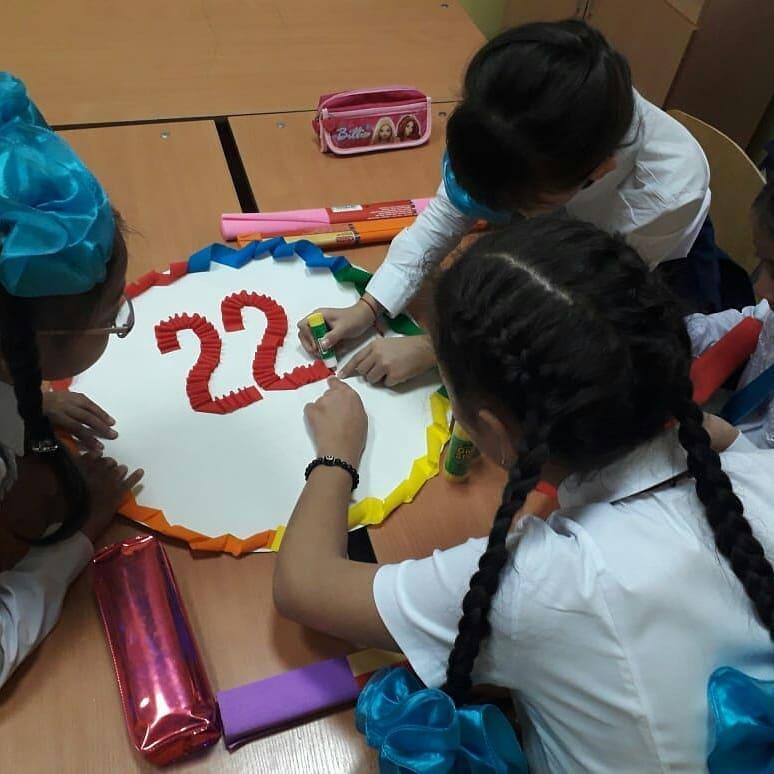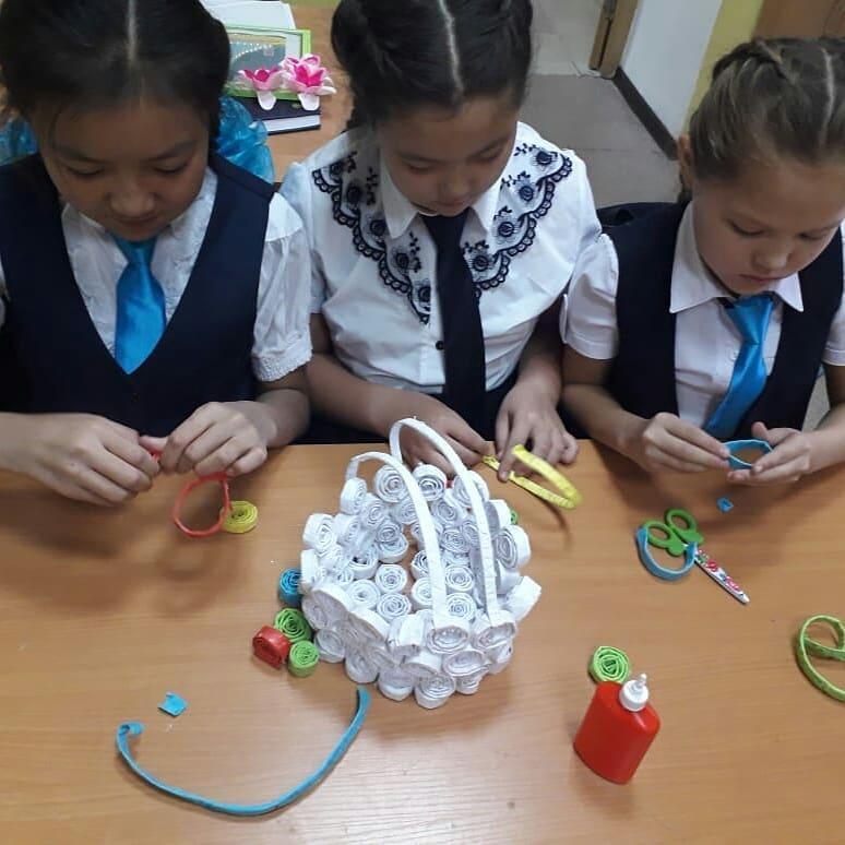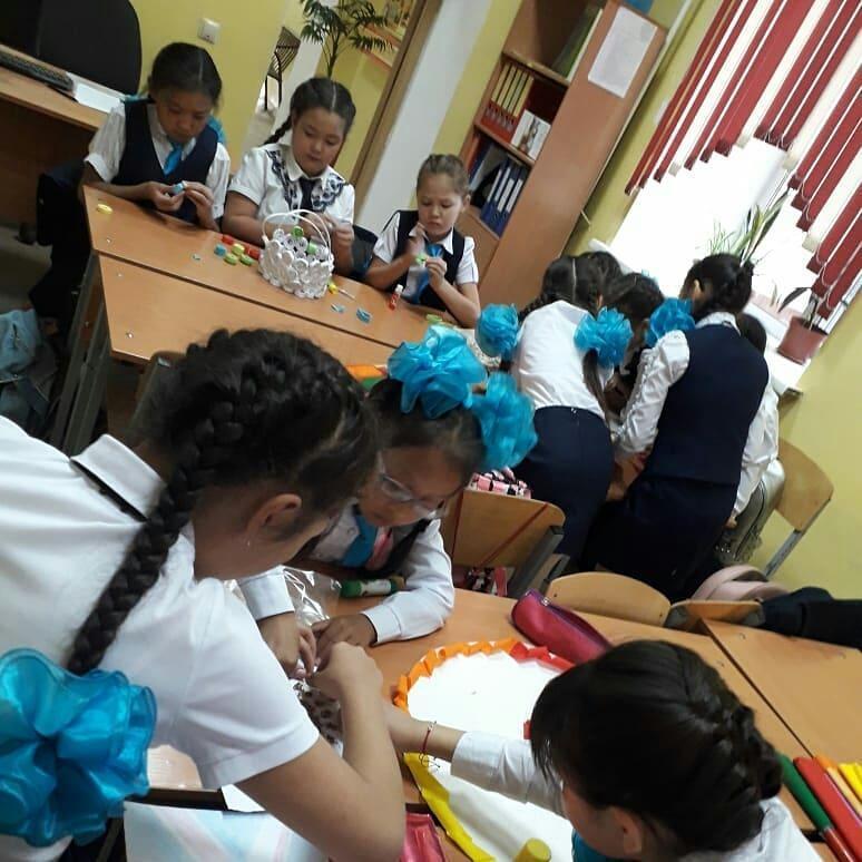Көркем еңбек пәнінен Надира Мұратқызы бедерлі сурет тақырыбы бойынша 1ә сынып оқушыларына шығармашылық жұмыспен айналысуды үйретуде.