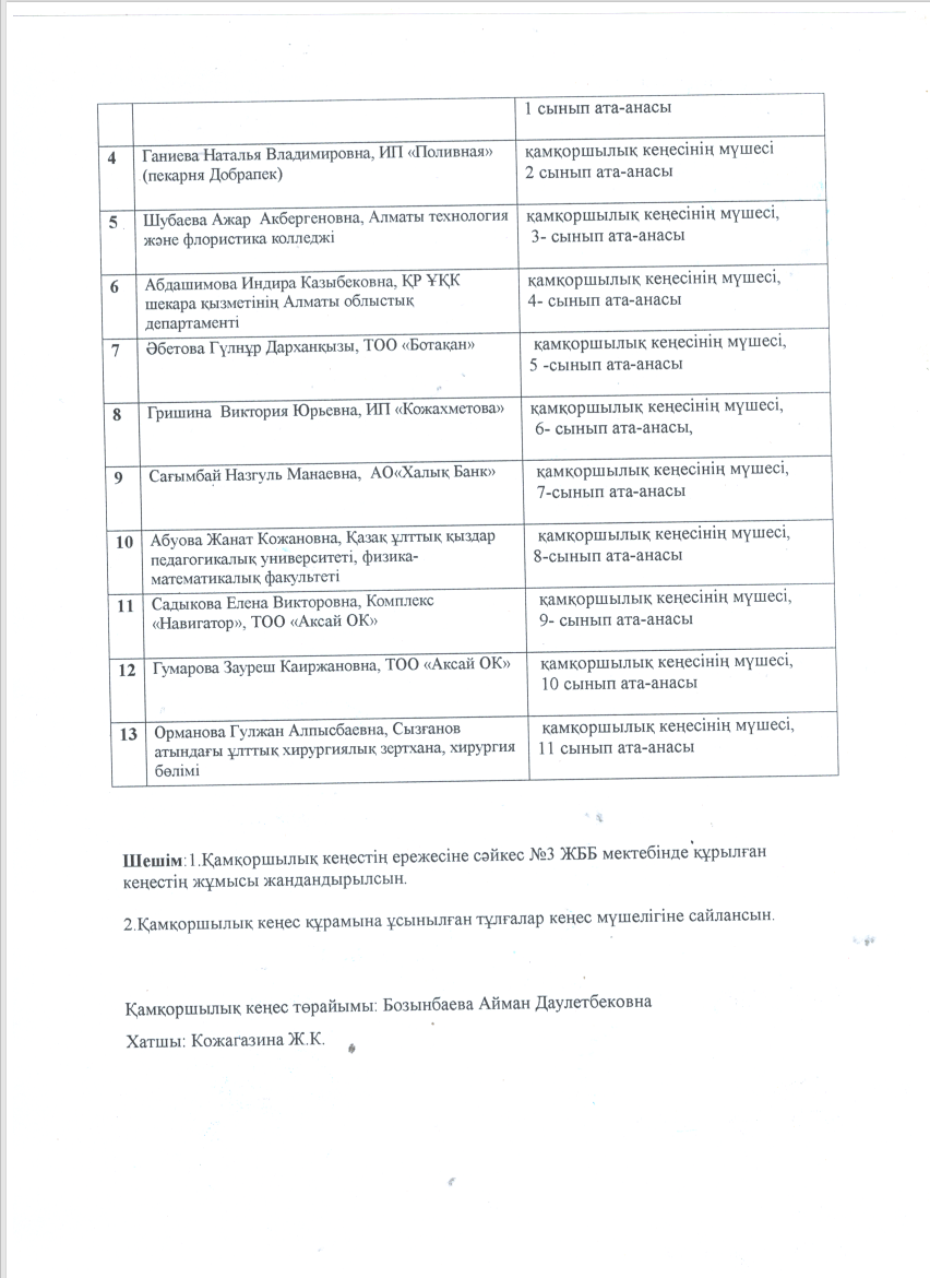 №3 ЖББМ Қамқоршылық кеңес құрамы